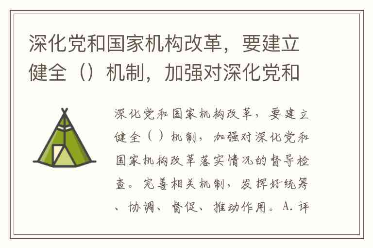 深化党和国家机构改革,要建立健全()机制,加强对深化党和国家机构改革落实情况的督导检查。完善相关机制,发挥好统筹、协调、督促、推动作用。A.评估和督察 B.检查和反馈 C.督促和协调 D.统筹和协调