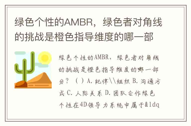 绿色个性的AMBR,绿色者对角线的挑战是橙色指导维度的哪一部分?()A.纪律\组织 B.沟通方式 C.人际关系 D.团队合作
