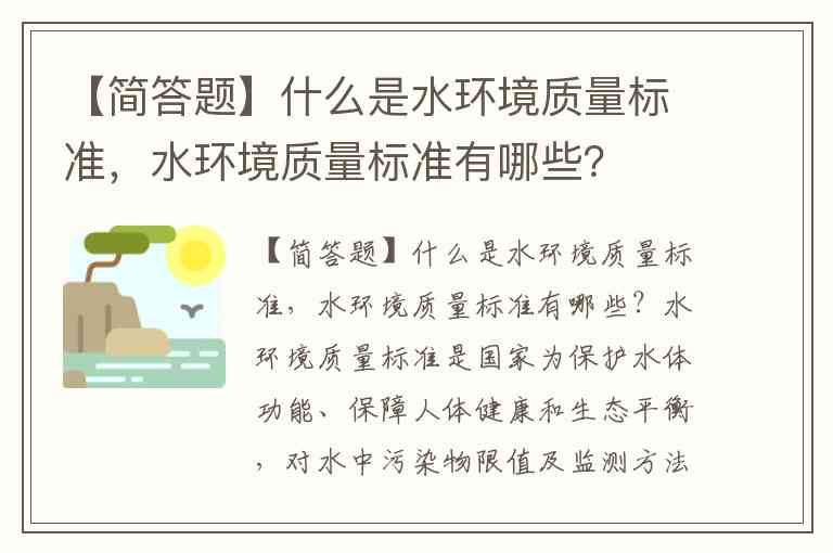 【简答题】什么是水环境质量标准,水环境质量标准有哪些?