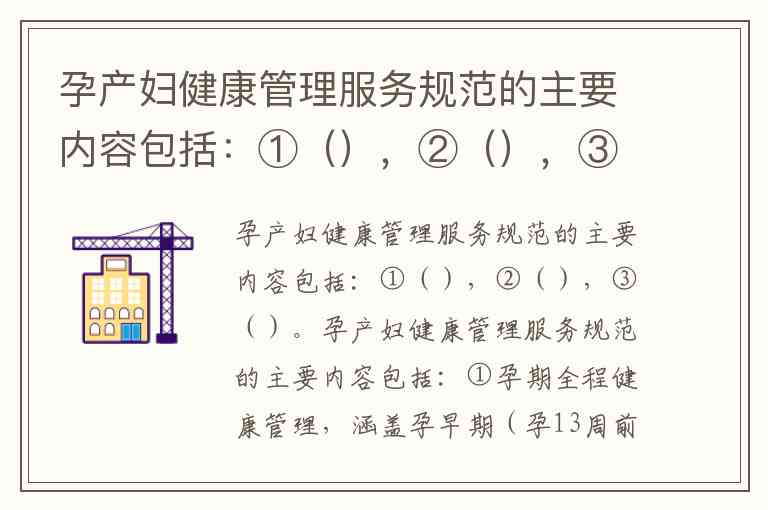 孕产妇健康管理服务规范的主要内容包括:①(),②(),③()。