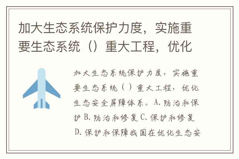 加大生态系统保护力度,实施重要生态系统()重大工程,优化生态安全屏障体系。A.防治和保护 B.防治和修复 C.保护和修复 D.保护和保障