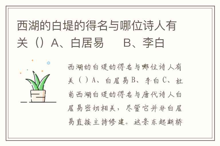 西湖的白堤的得名与哪位诗人有关()A、白居易 B、李白 C、杜甫