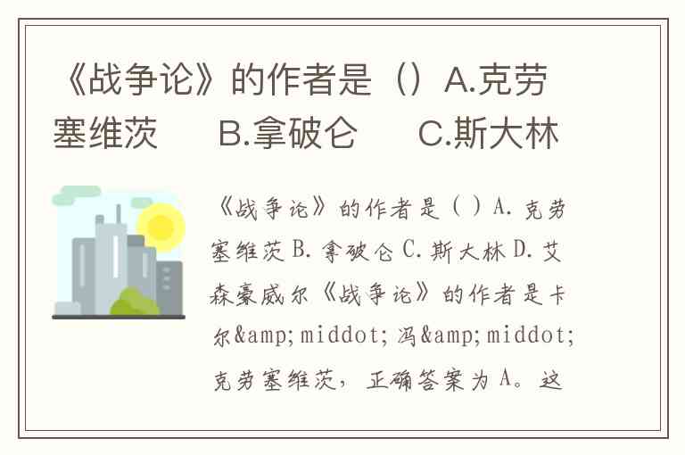 《战争论》的作者是()A.克劳塞维茨 B.拿破仑 C.斯大林 D.艾森豪威尔