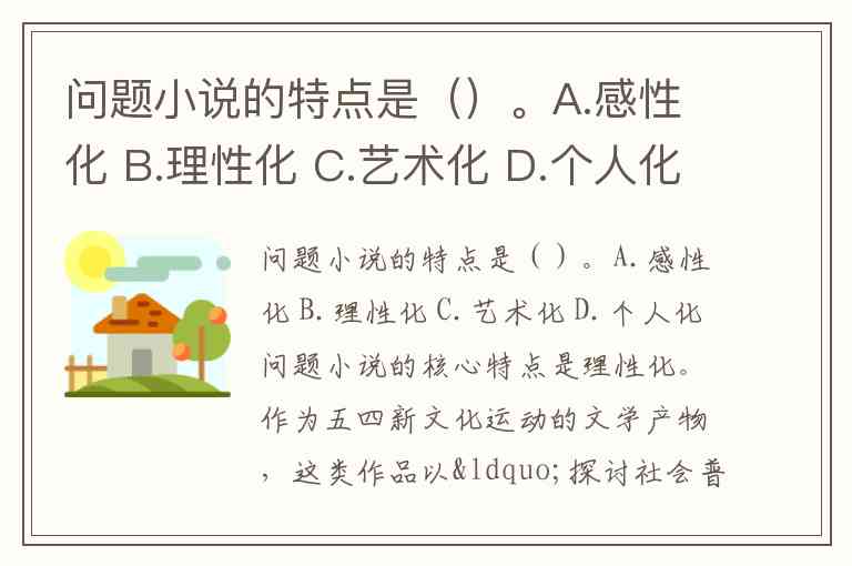 问题小说的特点是()。A.感性化 B.理性化 C.艺术化 D.个人化
