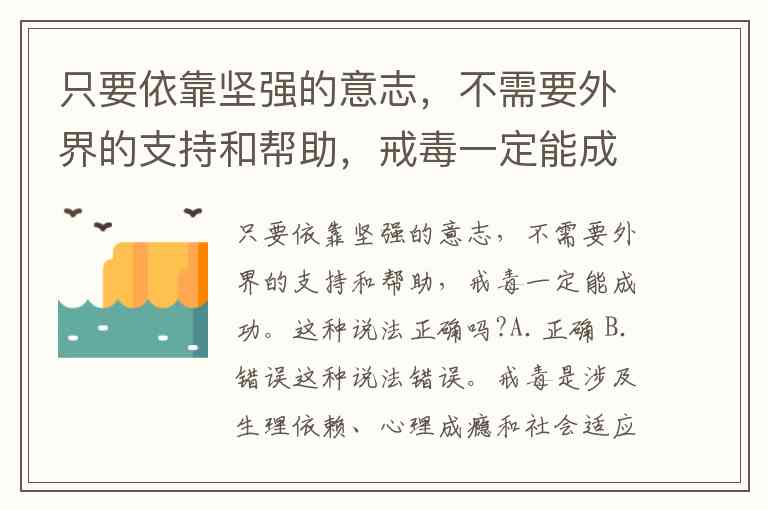 只要依靠坚强的意志,不需要外界的支持和帮助,戒毒一定能成功。这种说法正确吗?A.正确 B.错误