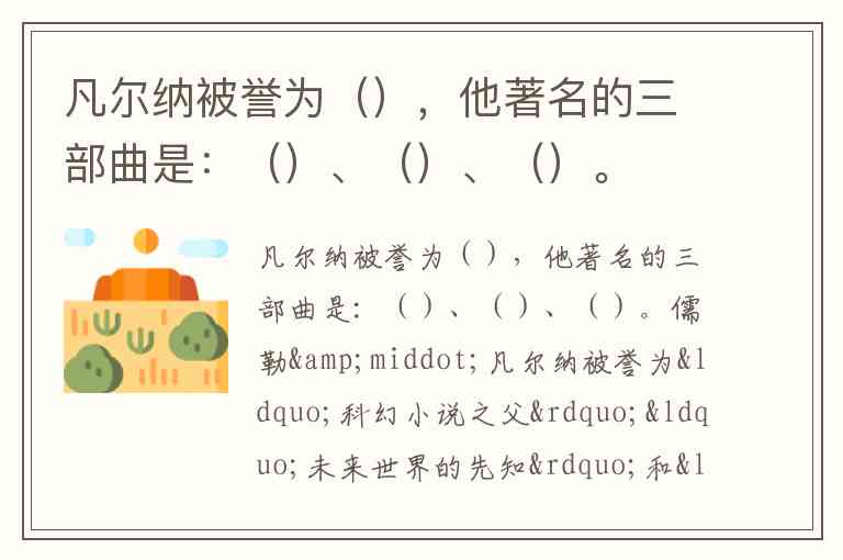凡尔纳被誉为(),他著名的三部曲是:()、()、()。