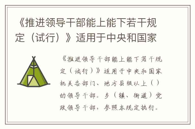 《推进领导干部能上能下若干规定(试行)》明确界定了适用范围,根据规定第三条,其主要适用于中央和国家机关各部门、地方县级以上党政机关的领导干部。这一表述在2025年发布的最新版本中保持一致,强调了制度对党政系统领导干部的直接约束力。