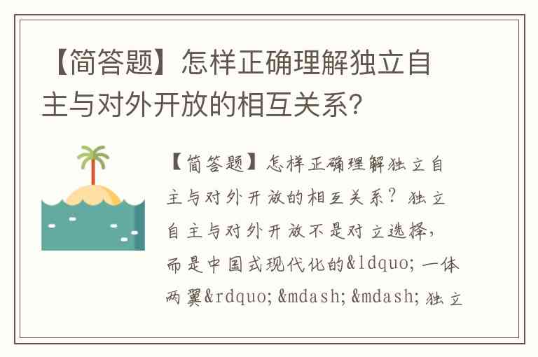 【简答题】怎样正确理解独立自主与对外开放的相互关系?