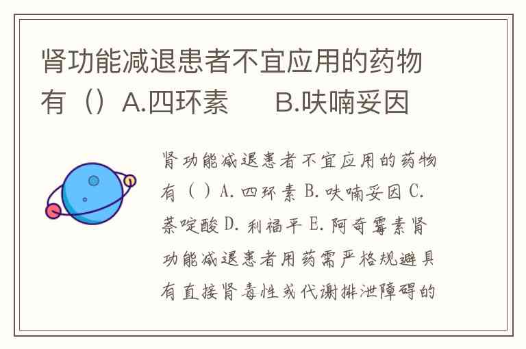 肾功能减退患者不宜应用的药物有()A.四环素 B.呋喃妥因 C.萘啶酸 D.利福平 E.阿奇霉素