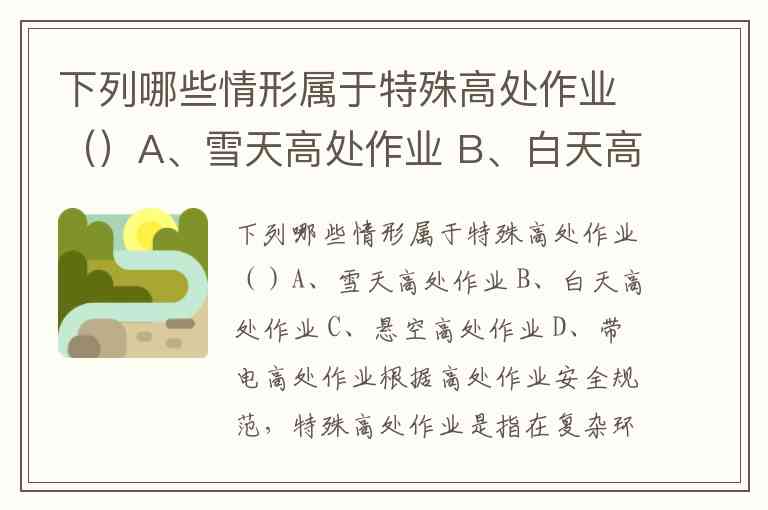 下列哪些情形属于特殊高处作业()A、雪天高处作业 B、白天高处作业 C、悬空高处作业 D、带电高处作业