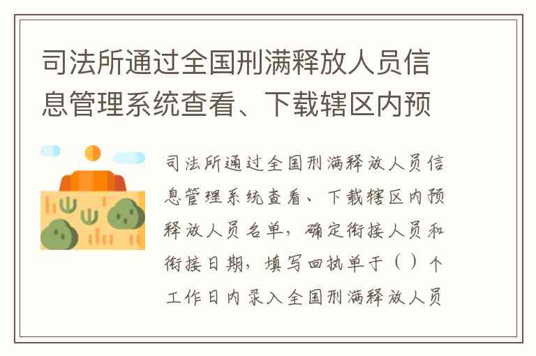 根据基层司法行政工作规范,司法所通过全国刑满释放人员信息管理系统接收预释放人员信息后,需在7个工作日内填写回执单并录入系统向监所反馈,同时将重点帮教对象情况通报公安派出所及乡镇(街道)人民政府(办事处)。这一时限要求旨在确保刑满释放人员衔接工作的及时性,为后续安置帮教、风险评估等工作预留充足准备时间。