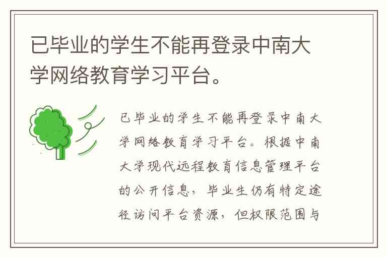 已毕业的学生不能再登录中南大学网络教育学习平台。