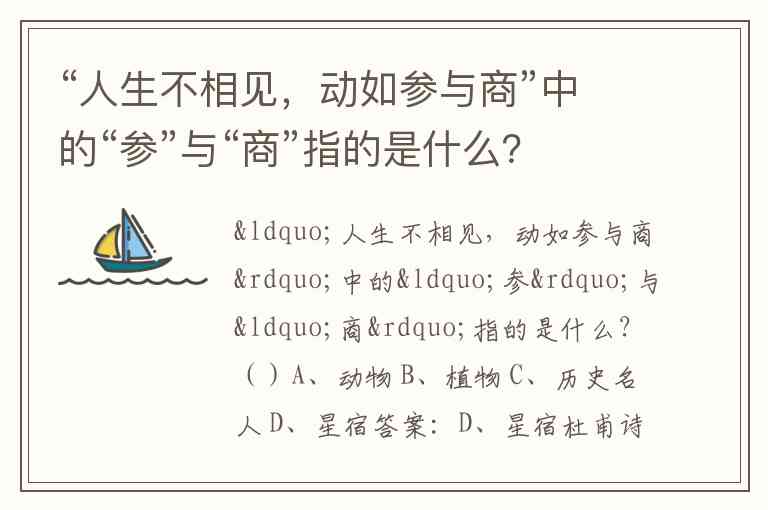 “人生不相见,动如参与商”中的“参”与“商”指的是什么?()A、动物 B、植物 C、历史名人 D、星宿