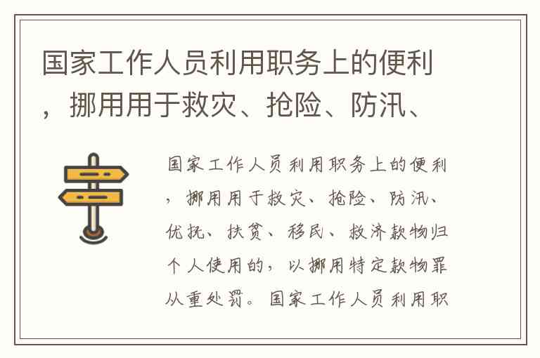 国家工作人员利用职务上的便利,挪用用于救灾、抢险、防汛、优抚、扶贫、移民、救济款物归个人使用的,以挪用特定款物罪从重处罚。