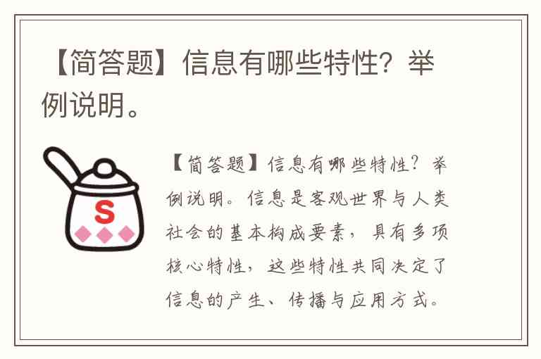 【简答题】信息有哪些特性?举例说明。