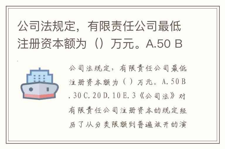 公司法规定,有限责任公司最低注册资本额为()万元。A.50 B.30 C.20 D.10 E.3