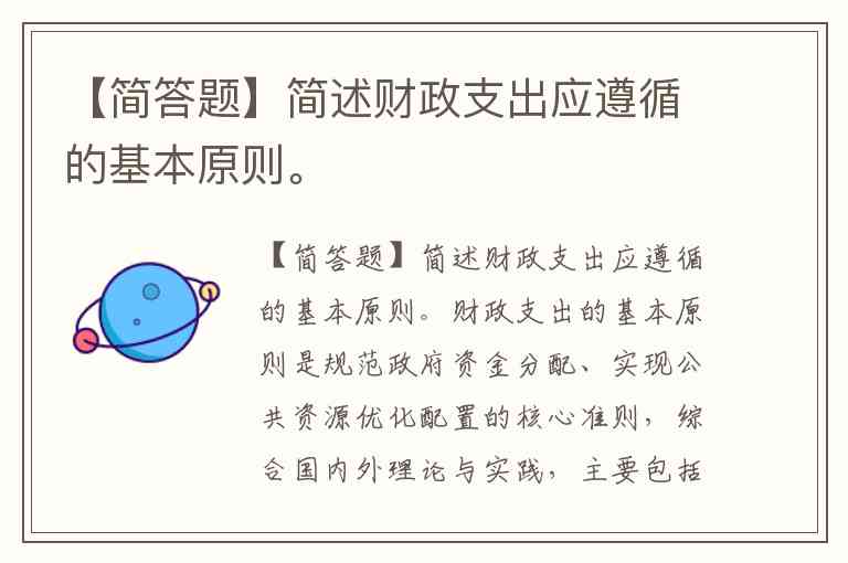 财政支出的基本原则是规范政府资金分配、实现公共资源优化配置的核心准则,综合国内外理论与实践,主要包括四大原则: