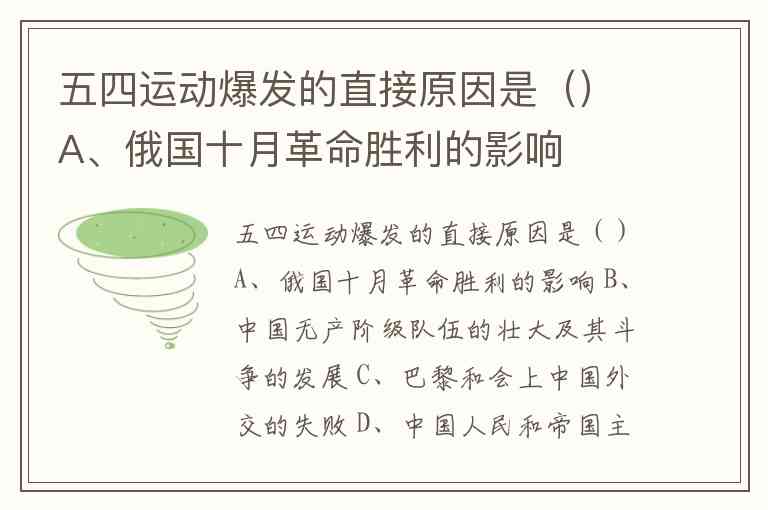 五四运动爆发的直接原因是()A、俄国十月革命胜利的影响 B、中国无产阶级队伍的壮大及其斗争的发展 C、巴黎和会上中国外交的失败 D、中国人民和帝国主义封建主义矛盾的加剧