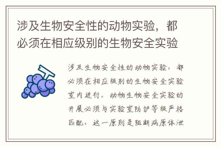 涉及生物安全性的动物实验,都必须在相应级别的生物安全实验室内进行。