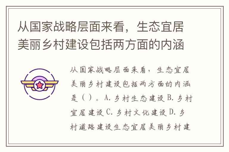 从国家战略层面来看,生态宜居美丽乡村建设包括两方面的内涵是()。A.乡村生态建设 B.乡村宜居建设 C.乡村文化建设 D.乡村道路建设