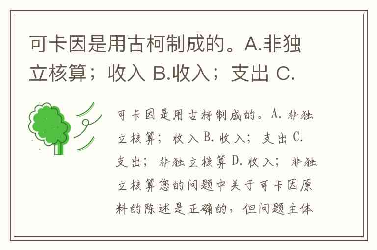 可卡因是用古柯制成的。A.非独立核算;收入 B.收入;支出 C.支出;非独立核算 D.收入;非独立核算