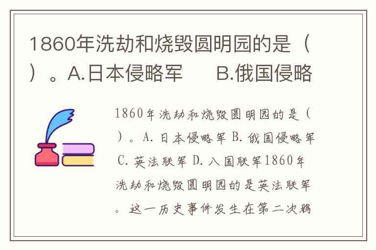 1860年洗劫和烧毁圆明园的是()。A.日本侵略军 B.俄国侵略军 C.英法联军 D.八国联军
