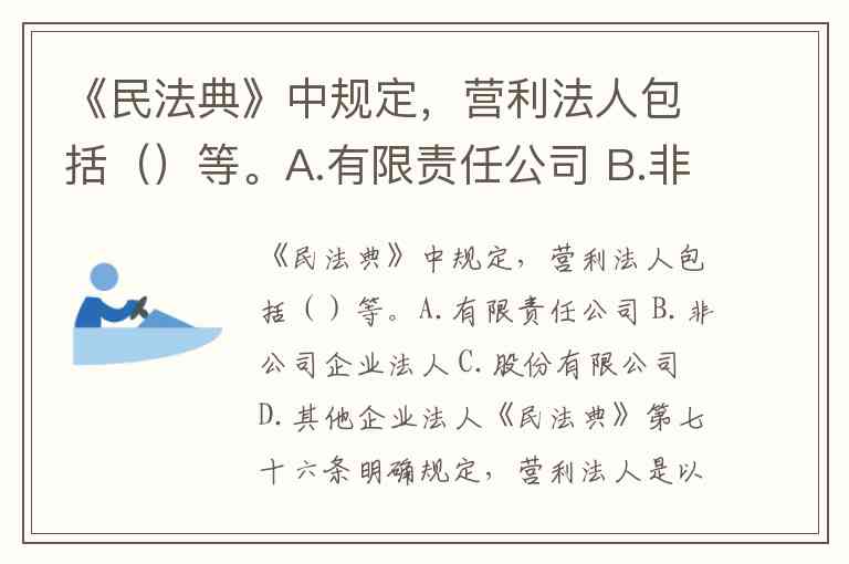 《民法典》中规定,营利法人包括()等。A.有限责任公司 B.非公司企业法人 C.股份有限公司 D.其他企业法人