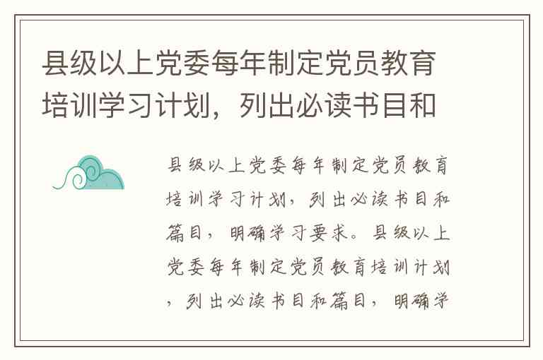 县级以上党委每年制定党员教育培训学习计划,列出必读书目和篇目,明确学习要求。