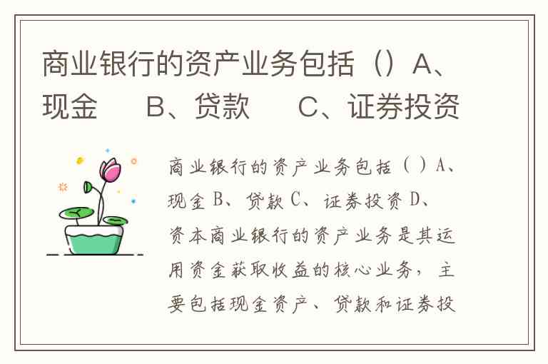 商业银行的资产业务包括()A、现金 B、贷款 C、证券投资 D、资本