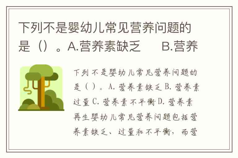 下列不是婴幼儿常见营养问题的是()。A.营养素缺乏 B.营养素过量 C.营养素不平衡 D.营养素再生