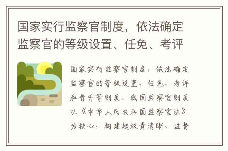 国家实行监察官制度,依法确定监察官的等级设置、任免、考评和晋升等制度。