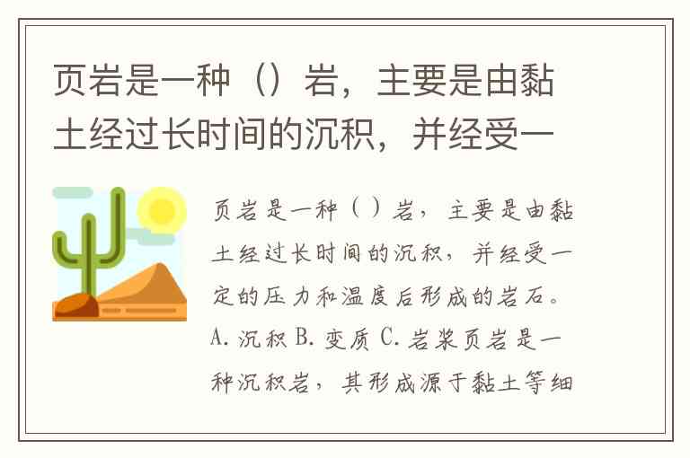 页岩是一种()岩,主要是由黏土经过长时间的沉积,并经受一定的压力和温度后形成的岩石。A.沉积 B.变质 C.岩浆