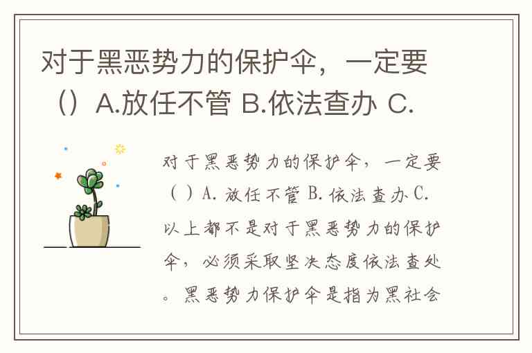 对于黑恶势力的保护伞,一定要()A.放任不管 B.依法查办 C.以上都不是