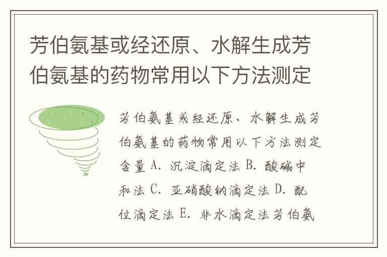 芳伯氨基或经还原、水解生成芳伯氨基的药物常用以下方法测定含量 A. 沉淀滴定法 B. 酸碱中和法 C. 亚硝酸钠滴定法 D. 配位滴定法 E. 非水滴定法