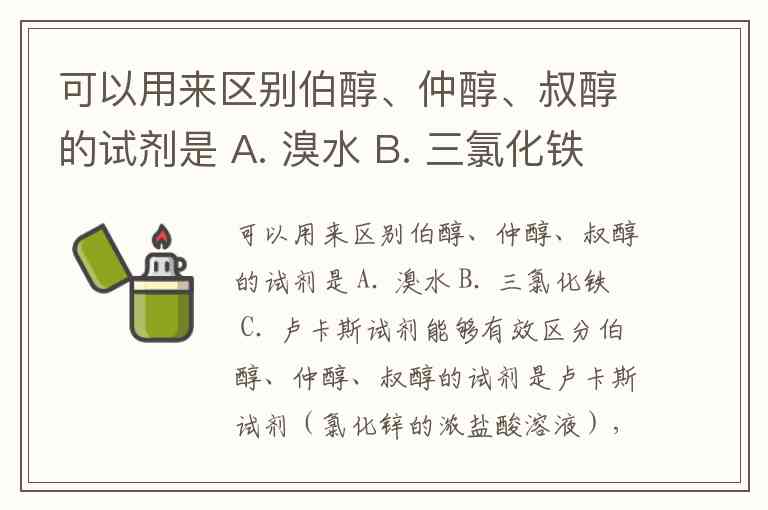 可以用来区别伯醇、仲醇、叔醇的试剂是 A. 溴水 B. 三氯化铁 C. 卢卡斯试剂