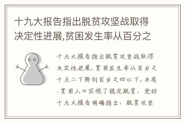 十九大报告指出脱贫攻坚战取得决定性进展,贫困发生率从百分之十点二下降到百分之四以下,共有_贫困人口实现了稳定脱贫。