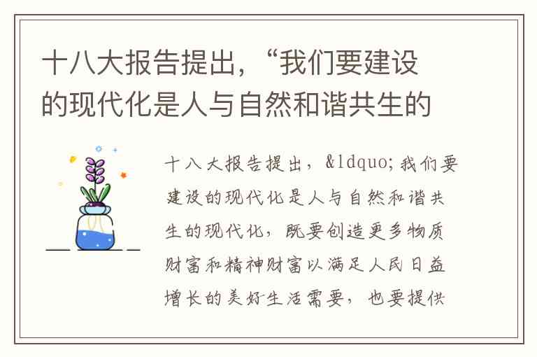 十八大报告提出,“我们要建设的现代化是人与自然和谐共生的现代化,既要创造更多物质财富和精神财富以满足人民日益增长的美好生活需要,也要提供更多优质生态产品以满足人民日益增长的优美生态环境需要。