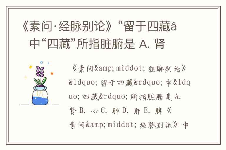 《素问·经脉别论》“留于四藏”中“四藏”所指脏腑是 A. 肾 B. 心 C. 肺 D. 肝 E. 脾