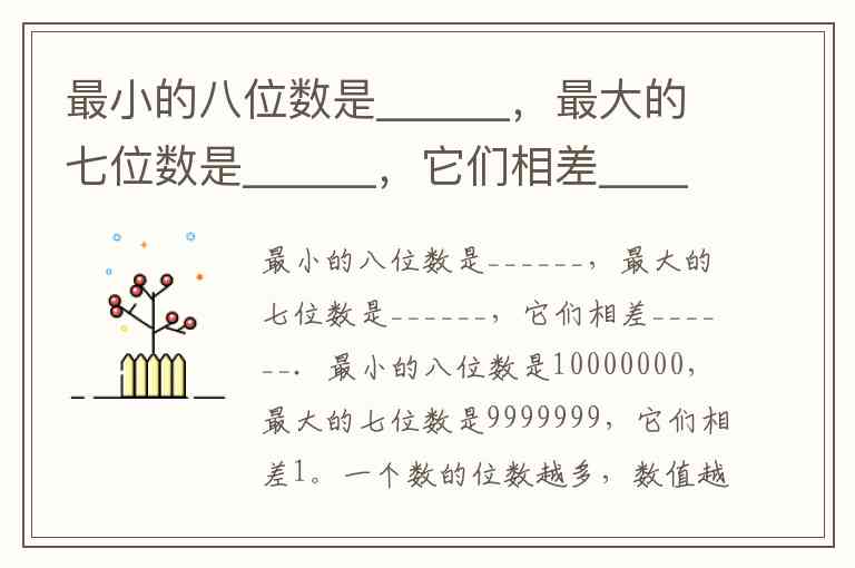 最小的八位数是______,最大的七位数是______,它们相差______.