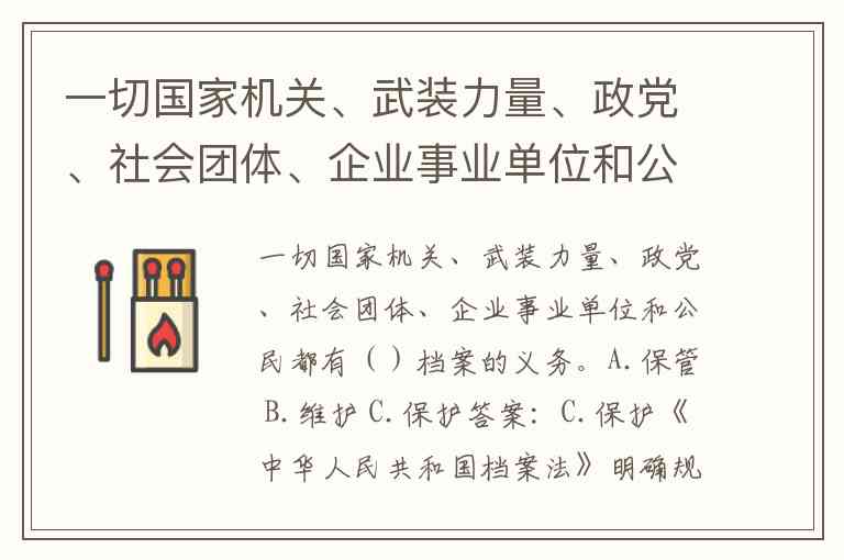 一切国家机关、武装力量、政党、社会团体、企业事业单位和公民都有()档案的义务。A.保管 B.维护 C.保护