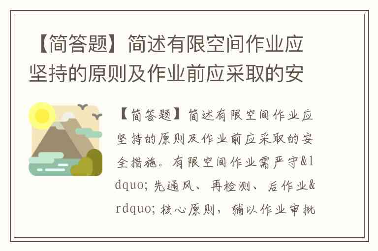 【简答题】简述有限空间作业应坚持的原则及作业前应采取的安全措施。