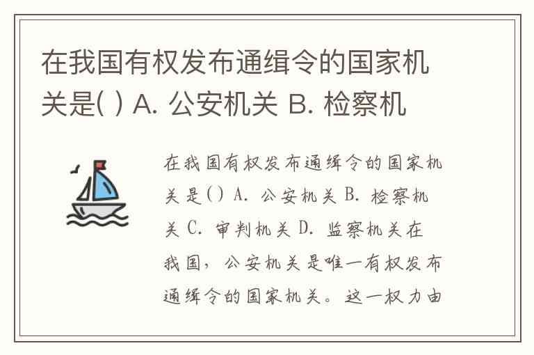 在我国有权发布通缉令的国家机关是( ) A. 公安机关 B. 检察机关 C. 审判机关 D. 监察机关
