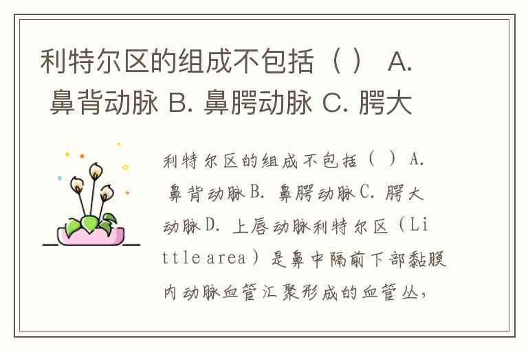 利特尔区的组成不包括( ) A. 鼻背动脉 B. 鼻腭动脉 C. 腭大动脉 D. 上唇动脉