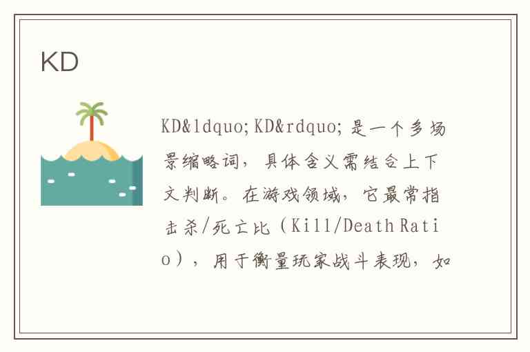 “KD”是一个多场景缩略词,具体含义需结合上下文判断。在游戏领域,它最常指击杀/死亡比(Kill/Death Ratio),用于衡量玩家战斗表现,如《英雄联盟》中KD值3.0意味着平均每死亡1次可击杀3名敌人。这一指标通过公式“击杀数÷死亡数”计算,高KD值通常代表更强的生存能力和战斗效率,但需注意结合团队贡献综合评估。