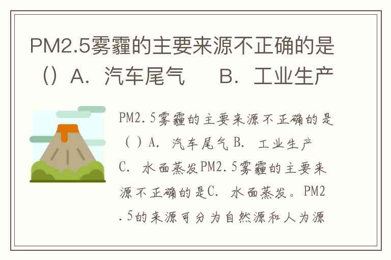 PM2.5雾霾的主要来源不正确的是C.水面蒸发。