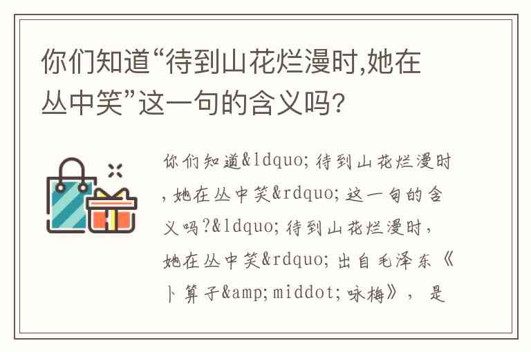 你们知道“待到山花烂漫时,她在丛中笑”这一句的含义吗?