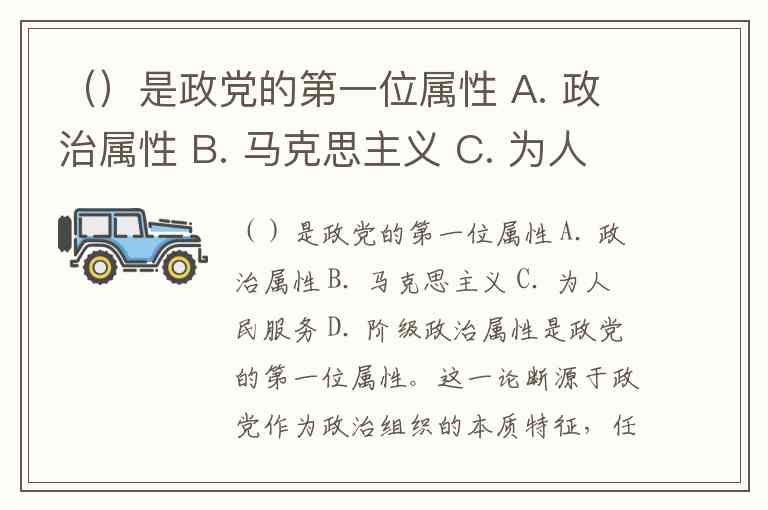 ()是政党的第一位属性 A. 政治属性 B. 马克思主义 C. 为人民服务 D. 阶级