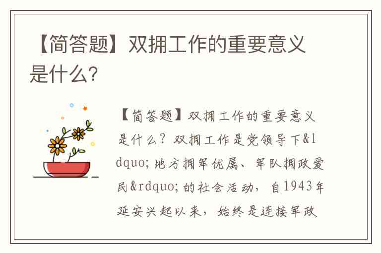【简答题】双拥工作的重要意义是什么?