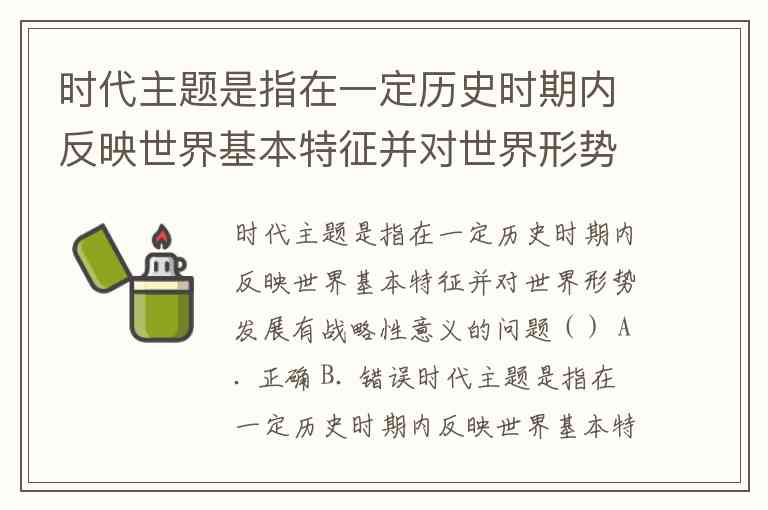 时代主题是指在一定历史时期内反映世界基本特征并对世界形势发展有战略性意义的问题() A. 正确 B. 错误