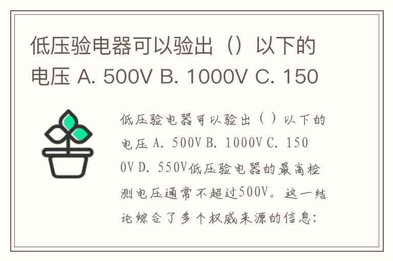 低压验电器可以验出()以下的电压 A. 500V B. 1000V C. 1500V D. 550V